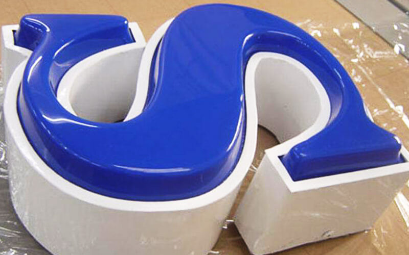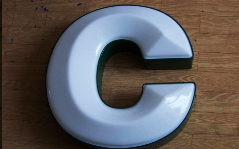 金属(烤漆)字壳压边,面板亚克力吸塑凸起,内置LED光源发光。
